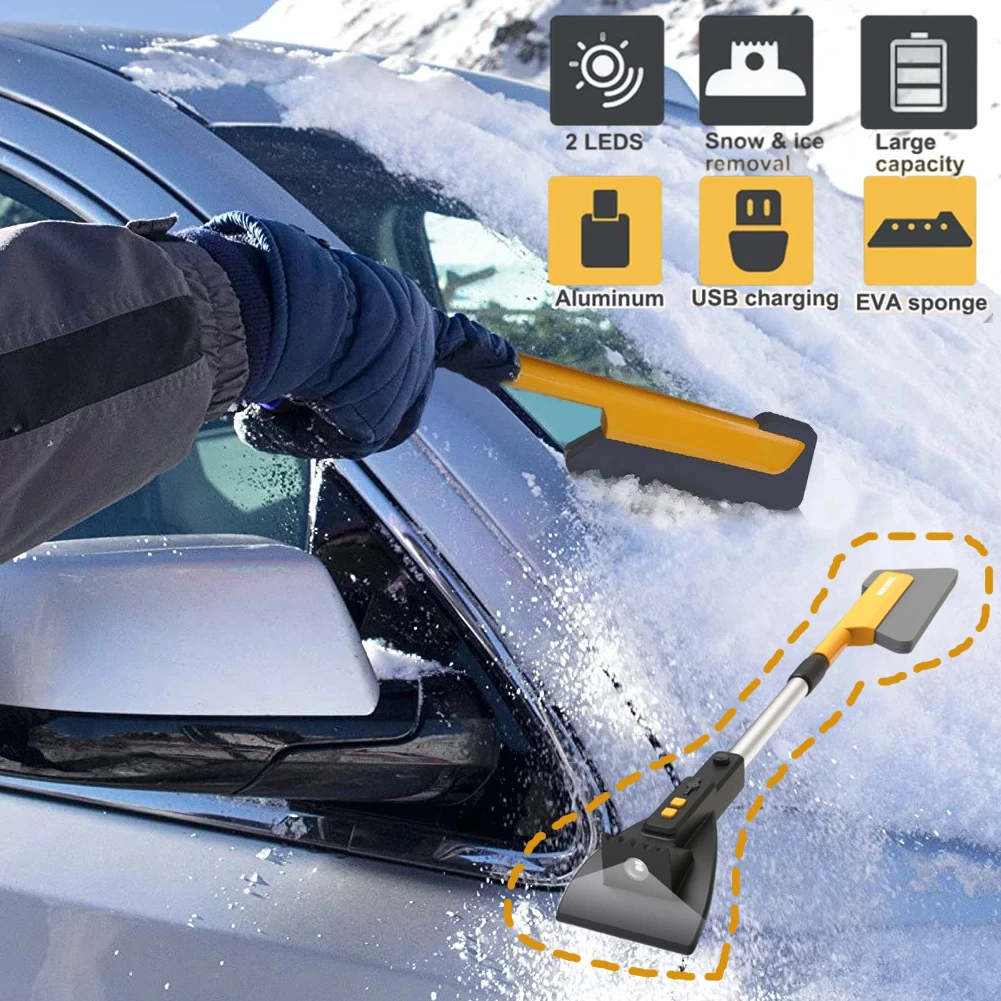 LED Car Snow Ice Scrapertwo-in-one design of the snow shovel brush allows you to easily remove ice and snow while protecting your precious cars and window glass from being scratched. Easily get rid of the worries of winter ice and snow.