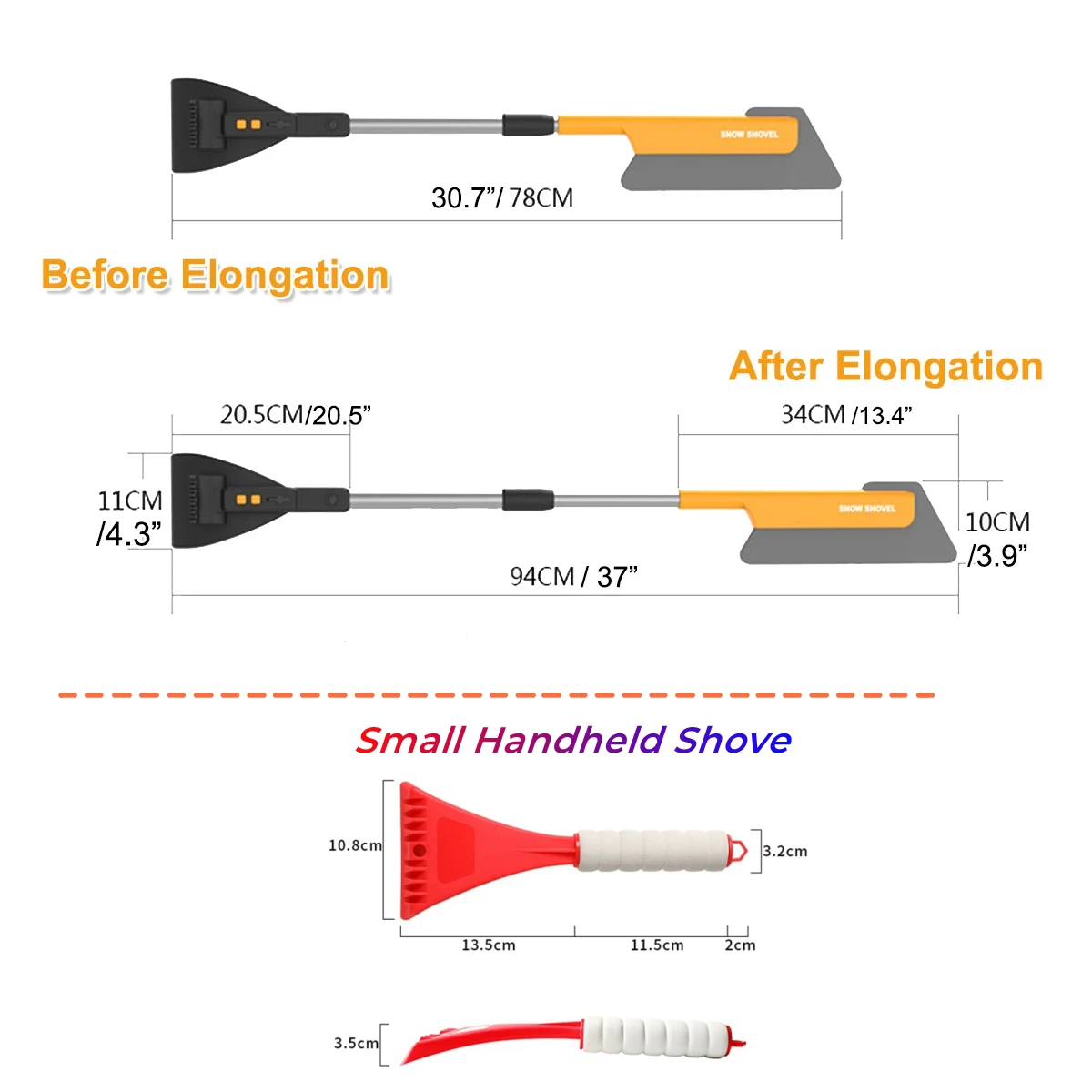 ★ Rotary telescopic aluminum tube, can adjust the length of snow shovel at any time, use a variety of models, with vehicle conditions.
